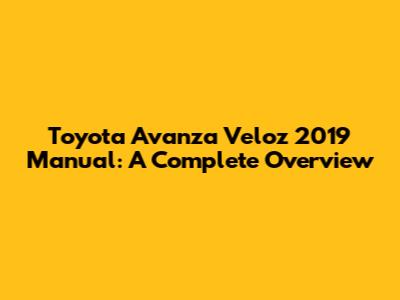 Toyota Avanza Veloz 2019 Manual: A Complete Overview