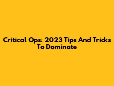 Critical Ops: 2023 Tips And Tricks To Dominate