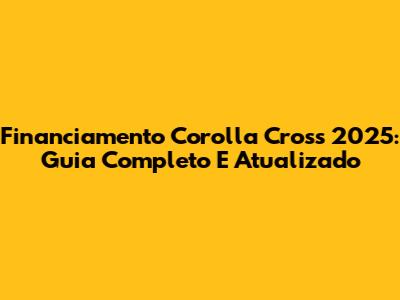 Financiamento Corolla Cross 2025: Guia Completo E Atualizado