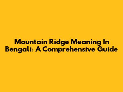 Mountain Ridge Meaning In Bengali: A Comprehensive Guide