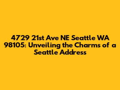 Hey there, real estate enthusiasts and Seattle aficionados! Let's dive deep into the heart of the Emerald City and explore a specific address: 4729 21st Ave NE, Seattle, WA 98105. This isn't just a string of numbers and letters; it's a gateway to understanding a vibrant neighborhood, the potential lifestyle it offers, and the overall appeal of Seattle living. We'll unpack everything, from the location's unique characteristics to the amenities and conveniences that make this address a sought-after spot. So, buckle up, and let's embark on this virtual tour!