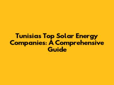 Tunisia's Top Solar Energy Companies: A Comprehensive Guide