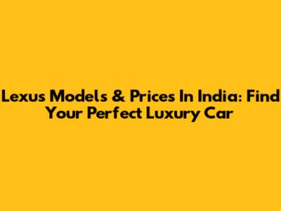 Lexus Models & Prices In India: Find Your Perfect Luxury Car