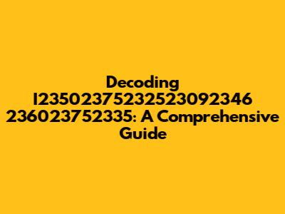 Decoding I23502375232523092346 236023752335: A Comprehensive Guide