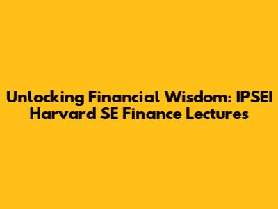 Unlocking Financial Wisdom: IPSEI Harvard SE Finance Lectures