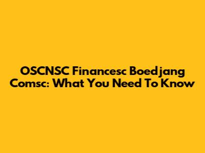 OSCNSC Financesc Boedjang Comsc: What You Need To Know