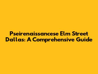 Pseirenaissancese Elm Street Dallas: A Comprehensive Guide
