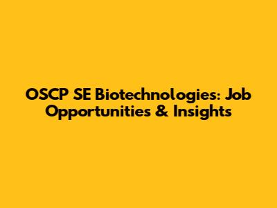 OSCP SE Biotechnologies: Job Opportunities & Insights
