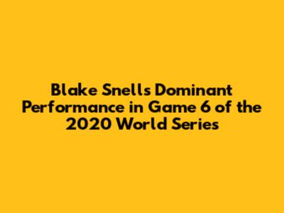 Hey guys, let's dive into one of the most talked-about pitching performances in recent World Series history: Blake Snell's Game 6 start in the 2020 Fall Classic. This game was packed with drama, controversy, and ultimately, a championship-clinching victory for the Los Angeles Dodgers. But before we get to the Dodgers' celebration, let's rewind and focus on the incredible talent of Blake Snell and what went down on that fateful night.
