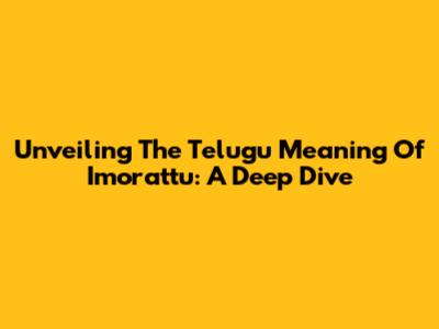 Unveiling The Telugu Meaning Of 'Imorattu': A Deep Dive