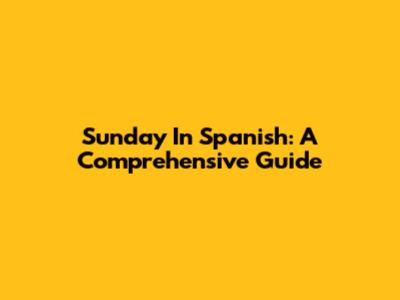 Sunday In Spanish: A Comprehensive Guide