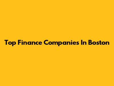Top Finance Companies In Boston