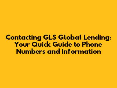 GLS Global Lending Phone Number for Customer Service: What You Need to Know