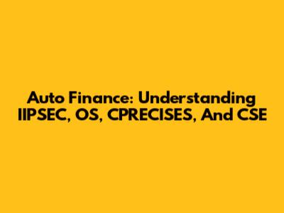 Auto Finance: Understanding IIPSEC, OS, CPRECISES, And CSE