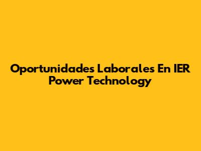 Oportunidades Laborales En IER Power Technology