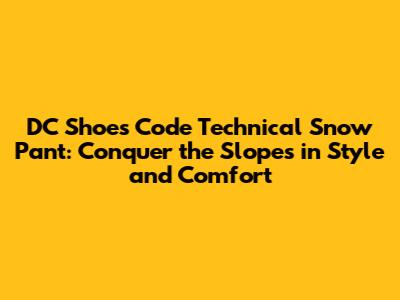 Unveiling the Technical Marvel: Features of the DC Shoes Code Snow Pant