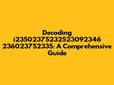 Let's dive into the enigmatic realm of i23502375232523092346 236023752335. What exactly is this sequence of numbers, and why should you care? Well, whether it's a product code, a serial number, or some other identifier, understanding it can unlock valuable information. In this article, we'll break down the possible meanings, contexts, and applications of this unique string. Think of this as your ultimate decoder ring for the digital age! We'll start by examining the structure of the number, looking for patterns or segments that might indicate specific categories or attributes. Is there a prefix or suffix that stands out? Are there repeating digits or sequences? Then, we'll explore potential databases or search engines where you might find more information about this identifier. Often, manufacturers, retailers, or technical documentation repositories can shed light on the true identity of this mysterious code. So, buckle up and get ready to decipher the secrets hidden within i23502375232523092346 236023752335! By the end of this guide, you'll be well-equipped to tackle similar alphanumeric puzzles and extract meaningful insights from seemingly random sequences. Let's embark on this exciting journey of discovery together!