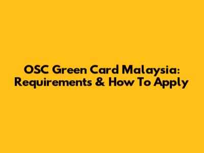 OSC Green Card Malaysia: Requirements & How To Apply