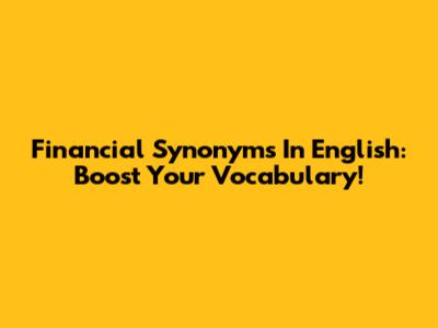 Financial Synonyms In English: Boost Your Vocabulary!