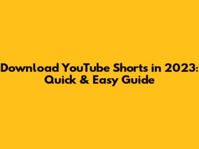 Download YouTube Shorts In 2023: Quick & Easy Guide
