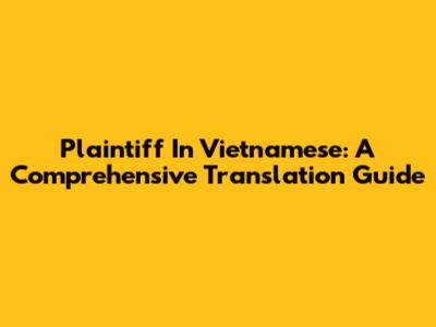 Plaintiff In Vietnamese: A Comprehensive Translation Guide