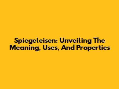 Spiegeleisen: Unveiling The Meaning, Uses, And Properties