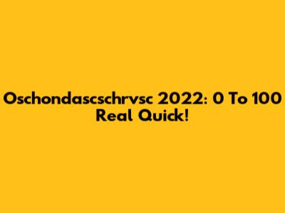 Oschondascschrvsc 2022: 0 To 100 Real Quick!