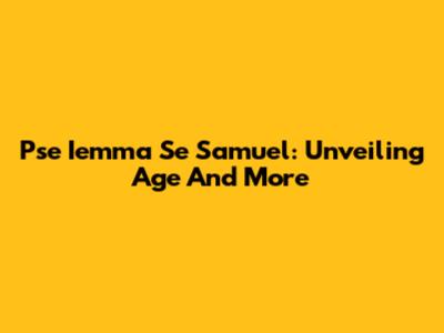 Pse Iemma Se Samuel: Unveiling Age And More