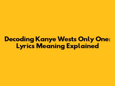 Decoding Kanye West's "Only One": Lyrics Meaning Explained
