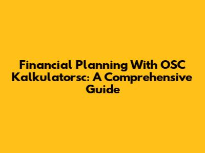 Financial Planning With OSC Kalkulatorsc: A Comprehensive Guide