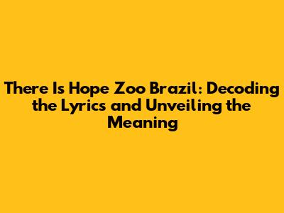 Hey music lovers! Ever stumbled upon a song that just sticks with you, and you can't quite put your finger on why? Well, for many, "There Is Hope Zoo Brazil" is one of those tunes. This enigmatic title piques curiosity, leaving listeners eager to delve into the depths of its lyrics and uncover the story it tells. So, buckle up as we embark on a lyrical journey, dissecting the song and exploring the potential meanings hidden within its verses. We'll break down the key phrases, analyze the recurring themes, and try to understand the overall message the artist is trying to convey. Whether you're a long-time fan or a newcomer to this song, this deep dive will offer fresh perspectives and a richer appreciation for "There Is Hope Zoo Brazil." Prepare to have your mind expanded and your musical senses awakened!