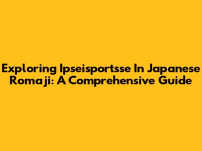 Exploring Ipseisportsse In Japanese Romaji: A Comprehensive Guide