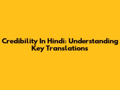 Credibility In Hindi: Understanding Key Translations