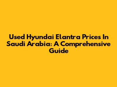 Used Hyundai Elantra Prices In Saudi Arabia: A Comprehensive Guide