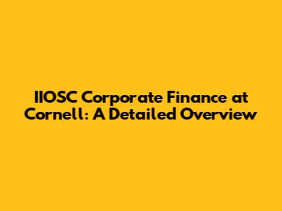 Hey guys! Let's dive deep into the IIOSC Corporate Finance program at Cornell University. This program is a cornerstone for students aiming to excel in the world of finance. We’ll explore what makes this program stand out, its curriculum, opportunities, and how it prepares graduates for successful careers. So, buckle up and let's get started!