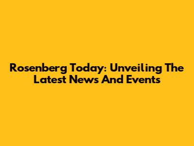Rosenberg Today: Unveiling The Latest News And Events