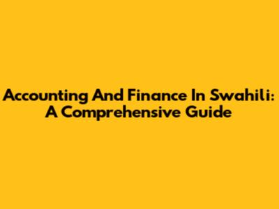 Accounting And Finance In Swahili: A Comprehensive Guide