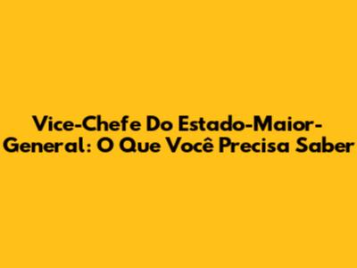 Vice-Chefe Do Estado-Maior-General: O Que Você Precisa Saber