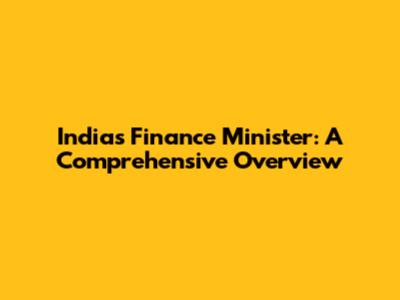India's Finance Minister: A Comprehensive Overview