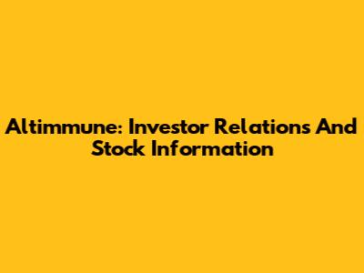 Altimmune: Investor Relations And Stock Information