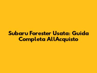 Subaru Forester Usata: Guida Completa All'Acquisto