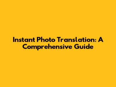 Instant Photo Translation: A Comprehensive Guide