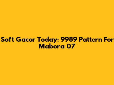 Soft Gacor Today: 9989 Pattern For Mabora 07