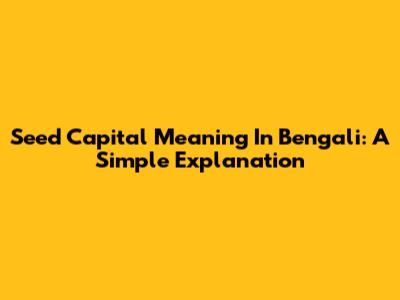 Seed Capital Meaning In Bengali: A Simple Explanation