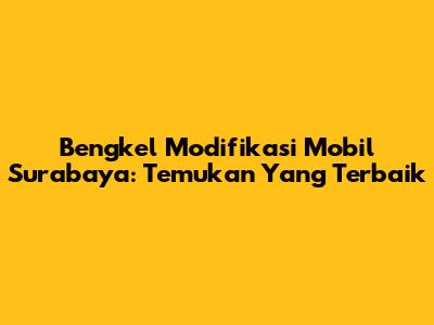 Bengkel Modifikasi Mobil Surabaya: Temukan Yang Terbaik