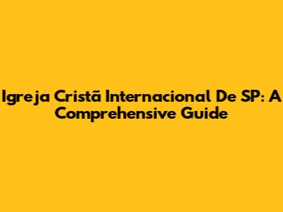 Igreja Cristã Internacional De SP: A Comprehensive Guide