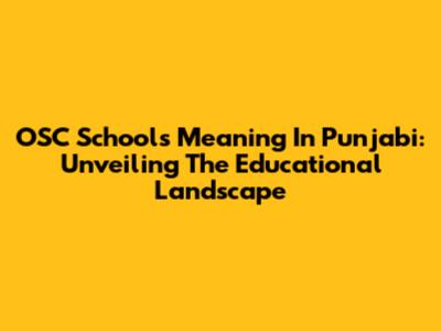 OSC Schools Meaning In Punjabi: Unveiling The Educational Landscape