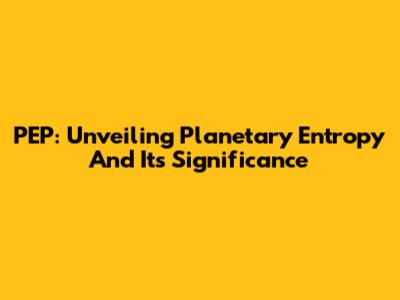 PEP: Unveiling Planetary Entropy And Its Significance
