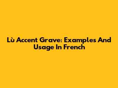 Lù Accent Grave: Examples And Usage In French