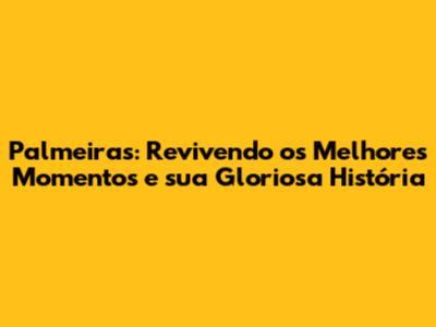 Ao longo de sua história, o Palmeiras construiu uma trajetória repleta de momentos inesquecíveis e conquistas memoráveis. Desde os tempos áureos da Academia de Futebol até os triunfos recentes, o clube demonstrou sua força, sua tradição e sua paixão pelo futebol. Os ídolos, os títulos e as emoções vividas nos gramados formam um legado glorioso que orgulha a torcida alviverde. A paixão pelo Palmeiras transcende gerações, unindo pessoas de diferentes origens e classes sociais em torno de um único ideal: o amor ao clube. A camisa verde e branca se tornou um símbolo de orgulho, perseverança e união para milhões de torcedores. A história do Palmeiras é um exemplo de como o trabalho em equipe, a dedicação e o talento individual podem levar ao sucesso.